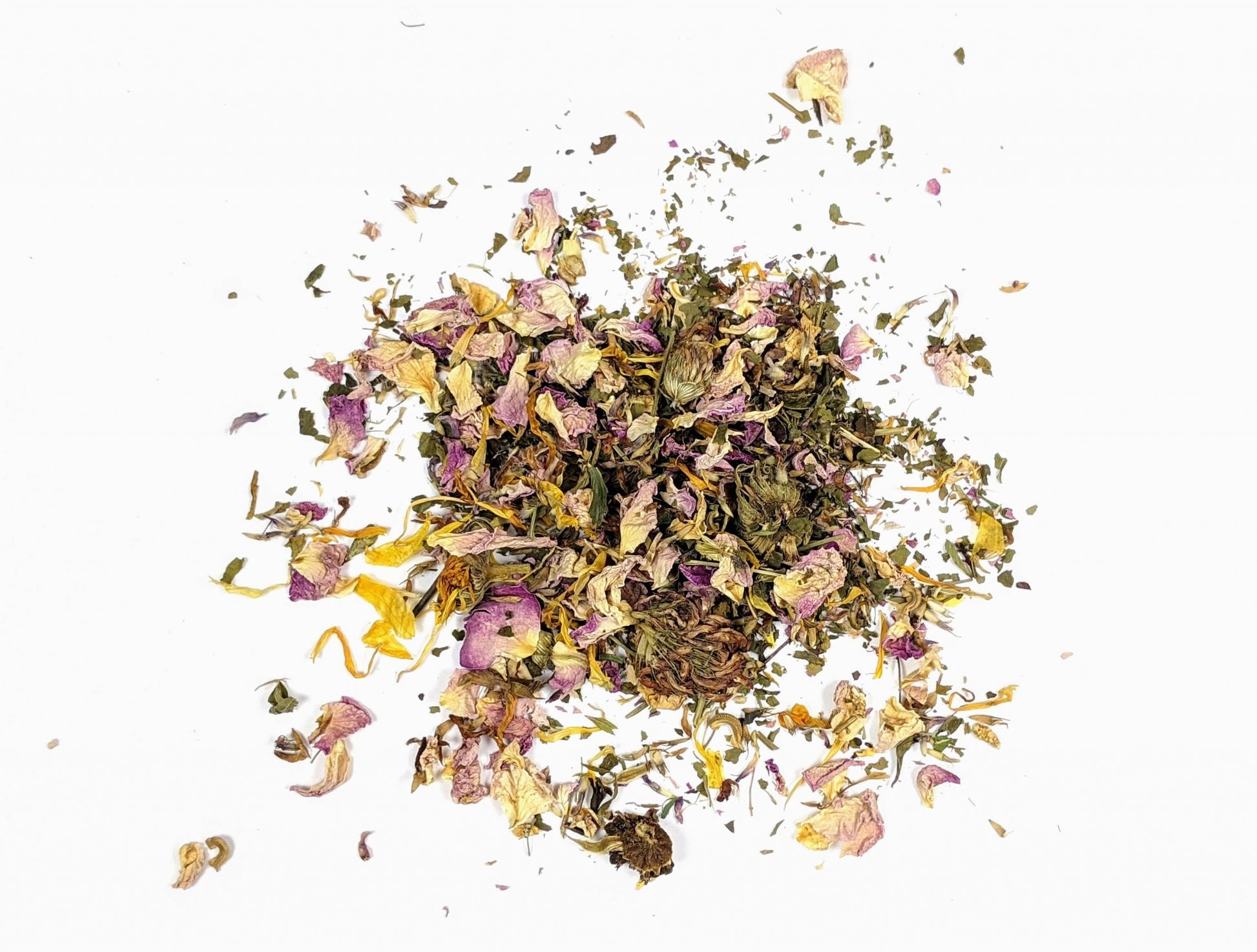 Organic pink rose petals, organic red clover tops, organic calendula, organic violet leaf | .90 oz / 25.5 g
